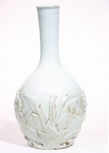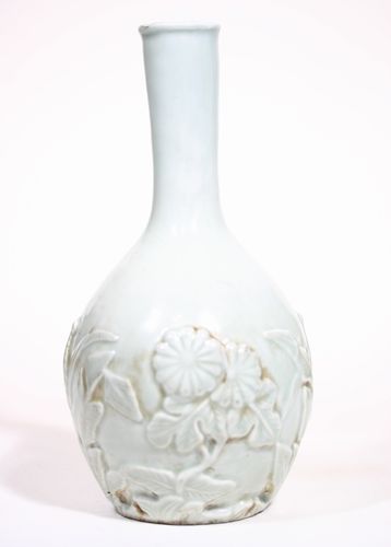李朝白磁徳利 菊花彫